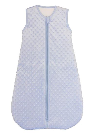 - HIGH QUALITY: This is a very warm 2.5 Tog Winter Model baby sleeping bag for room temperatures below 70 F. Minky Dot outer shell and 100% Jersey cotton inner lining. High quality YKK snaps and zippers. Please follow our sizing chart. The large size will not fit unless your toddler is at least 24 months old.