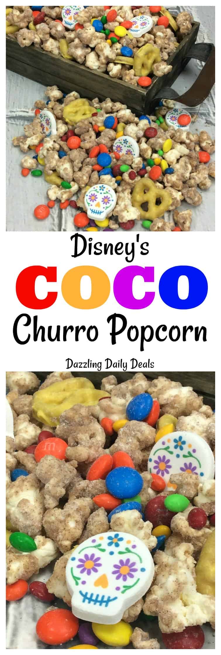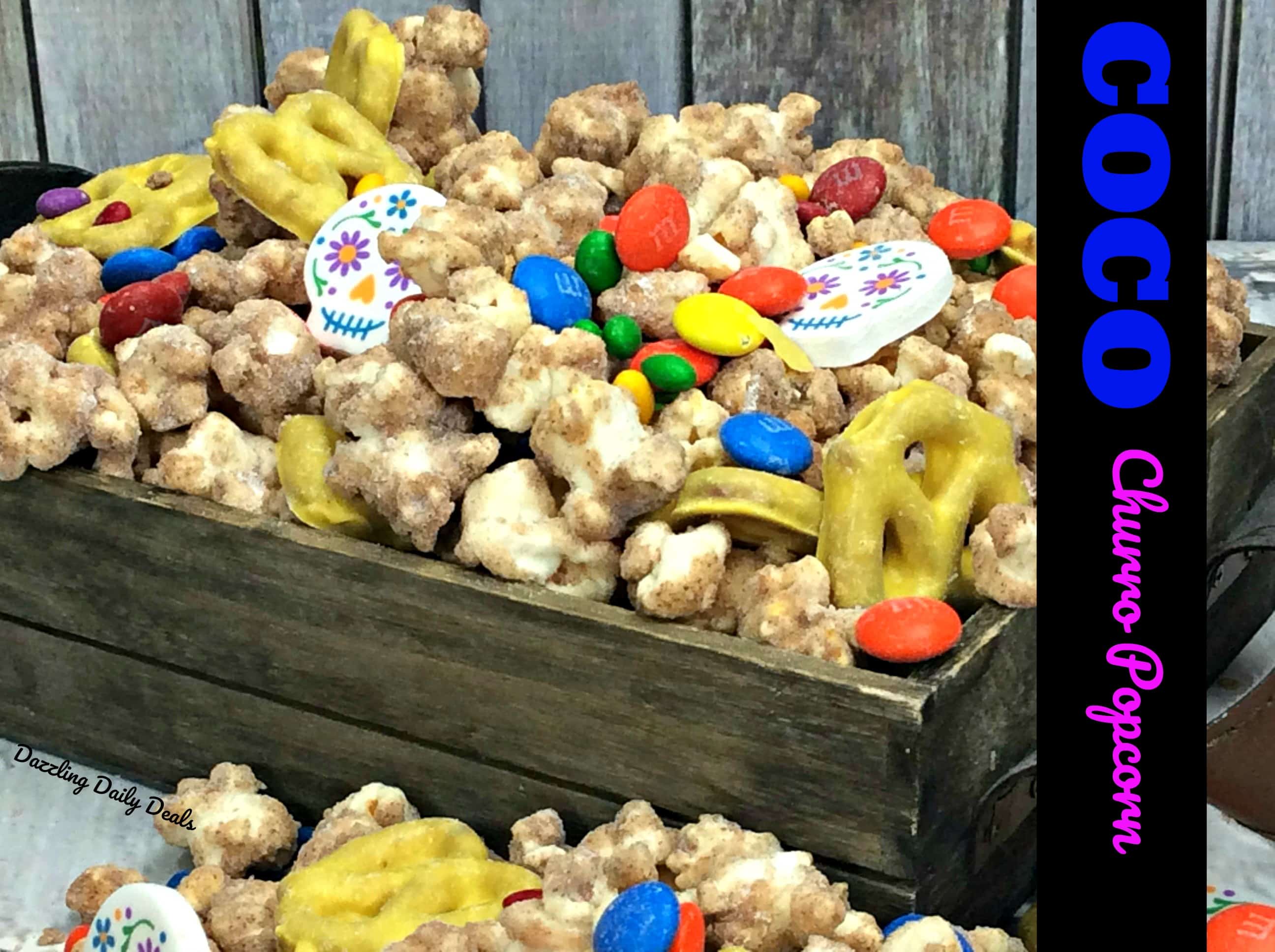 So now that the Blu-Ray/ DVD of COCO has been release, you should have a viewing party with this easy and impressive recipe – Coco Churro Popcorn