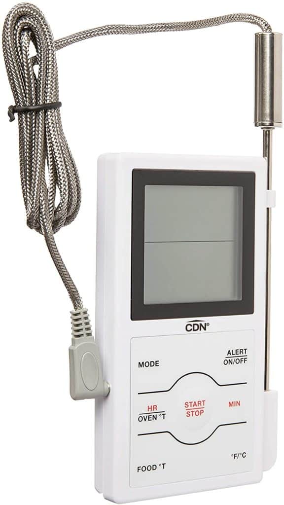 Perfect for roasting or grilling. Choose the type of meat or poultry and the doneness desired. CDN’s Programmable Probe Thermometer/Timer (DTP482) has been pre-programmed with 6 meat/poultry choices and various doneness temperatures. The pre-programmed temperatures are based on USDA safe cooking temperatures. The TASTE mode will not allow the user to undercook when it is not safe to do so. Both the taste chosen and the temperature are displayed during cooking. Simply insert the probe into the food. Place the food in the oven or barbecue and close the oven door (or grill cover) directly over the probe cable.