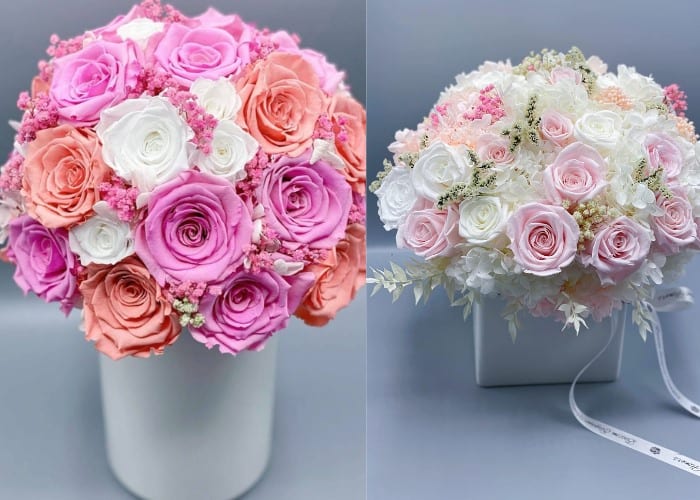 Everlasting Roses are 100% real flowers. They aren’t made from silk or any other material. To properly preserve these flowers, it’s critical that your roses were cut when they are at their most beautiful. The flowers are then go through a process that re-hydrates the rose from its petals to its stem replacing the sap within. After a few days, the process is complete and you have preserved roses that are flexible and look natural. We ship nationwide!