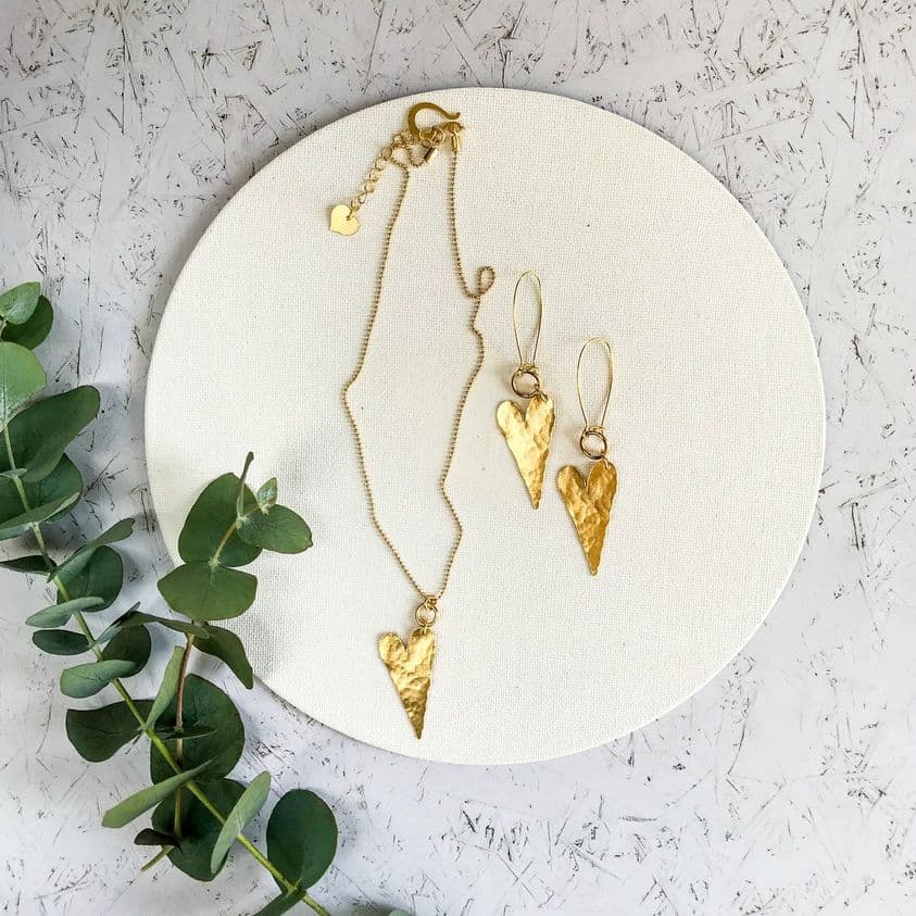 This set features Eliana Silver and Martha Silver, both pieces are designed and made by hand in Israel. Eliana is a classic heart pendant necklace with a little touch of contemporary design. As you may have noticed, this necklace is very similar to the heart necklace that Hoda Kotb wears on the Today Show! Our classy Martha Earrings add elegance to any outfit and are the perfect complement to your silver jewelry. Being smaller, they are slightly more understated making them perfect for work, zoom meetings, and more casual outings.