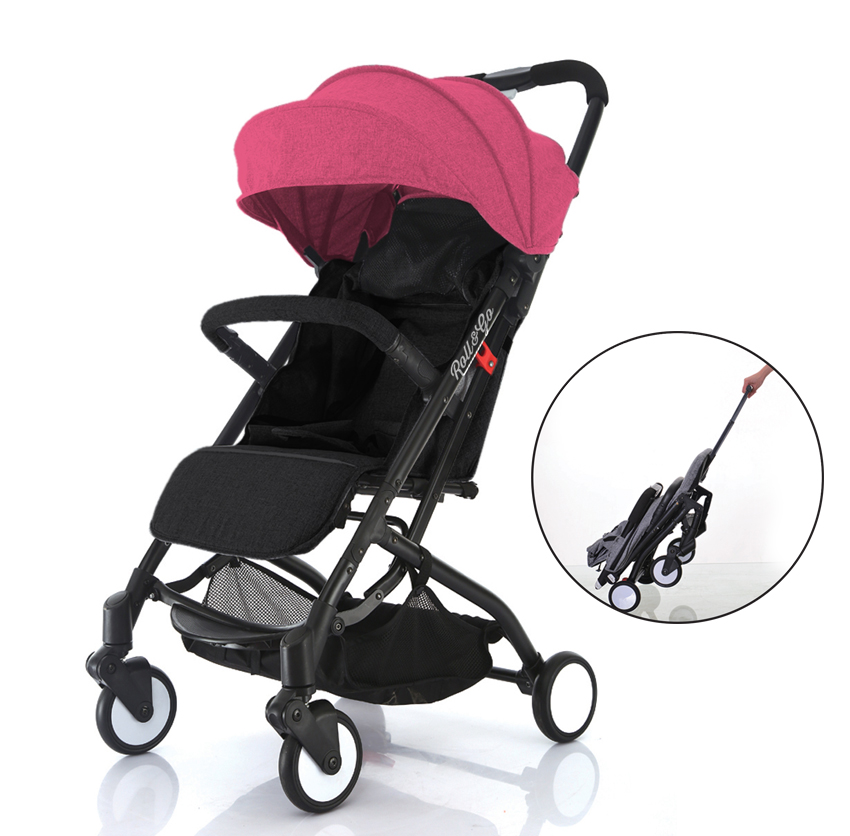 This Roll & Go urban stroller is perfect for the family on-the-go with compact detailing and a patent pending telescopic pull handle that allows for easy transport through airports, parks and city streets. Inspired by the juggling act of carrying strollers up and down escalators, the Roll & Go is the first to feature a telescopic pull handle that transforms the stroller into a luggage like carry-on. This allows the stroller to be easily pulled across any street or store without having to deal with any slamming of ankles and strollers. In addition to its fold hold, the stroller is so compact that it easily fits in overhead compartments on airplanes and any form of transportation.